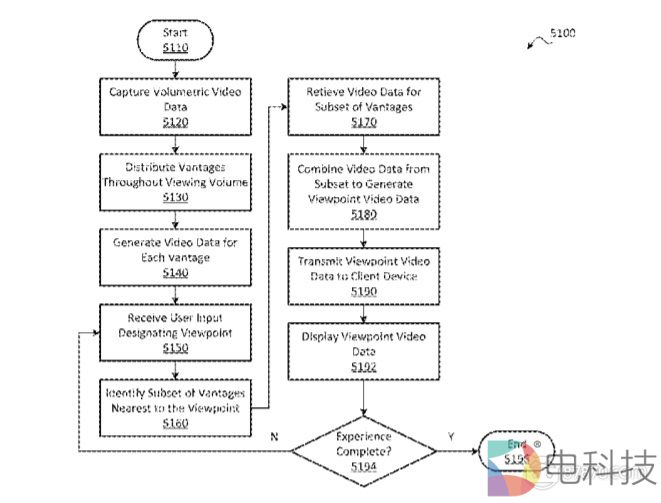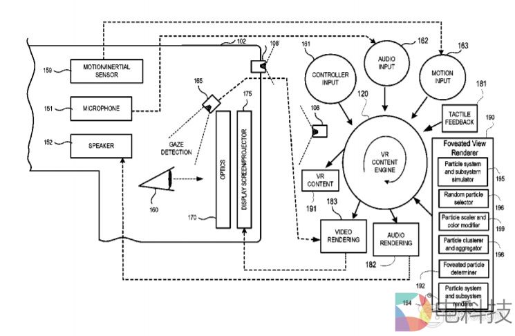 专利描述了处理VR系统数据的方法和设备,其包括接收追踪信息,所述追踪信息包括用户位置信息和眼睛注视点信息中的至少一个。根据追踪信息,一个或多个处理器可以预测用户视点。根据所述预测,在所述的估计位置显示下一图像帧。根据估计位置确定先前编码帧中的对应匹配部分,并编码下一帧视频数据。