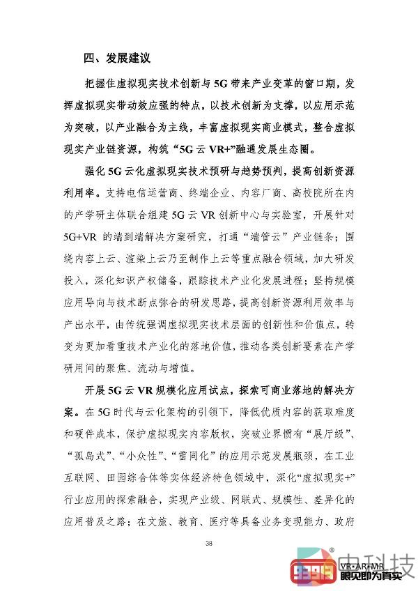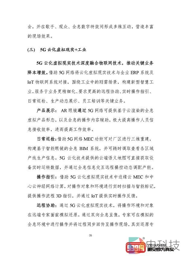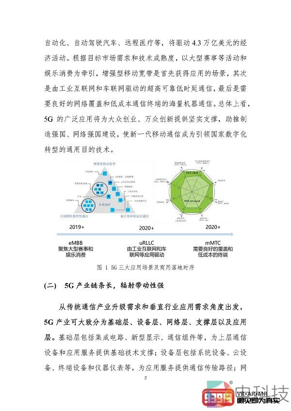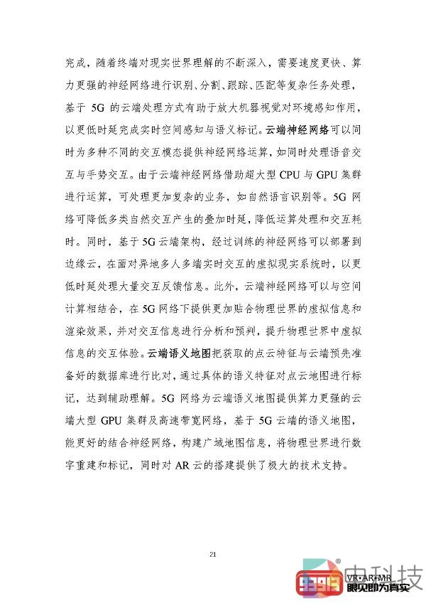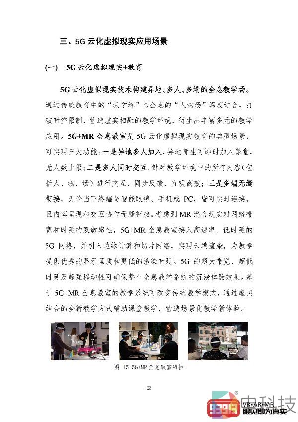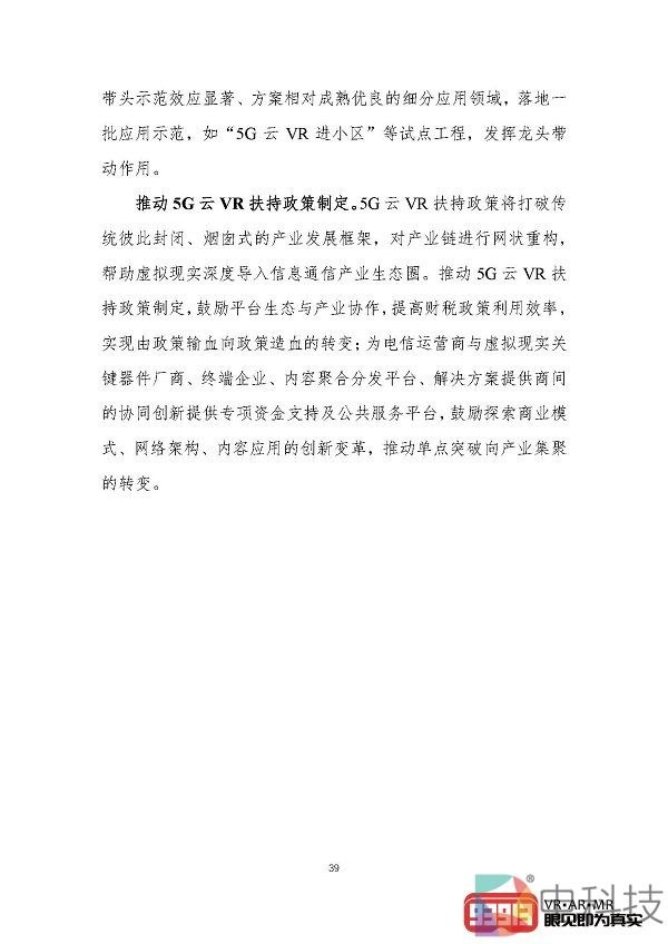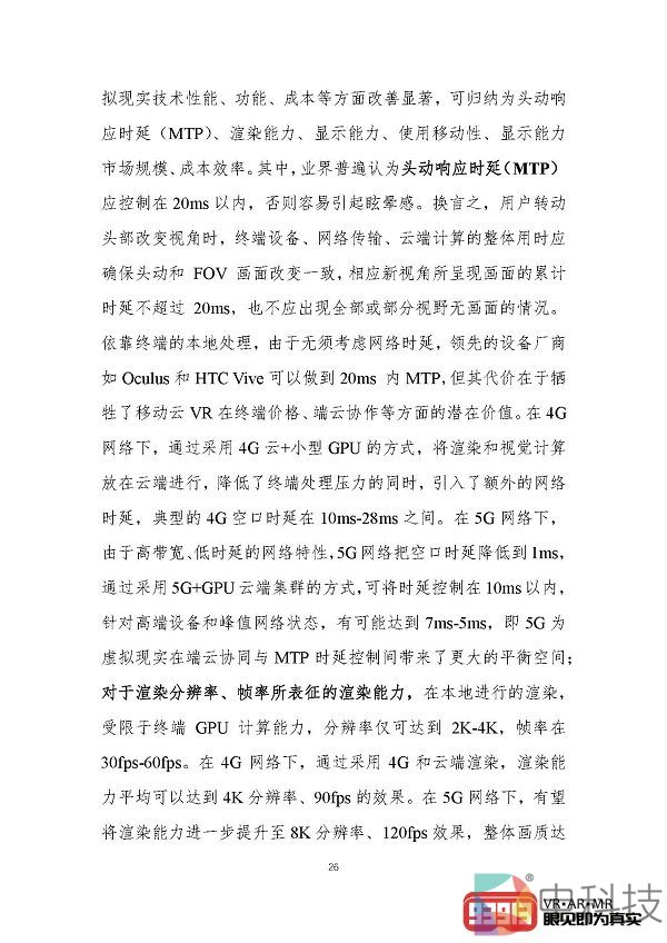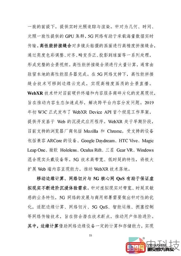 影创科技、诺基亚贝尔、信通院两化所与青岛市崂山区人民政府联合发布行业白皮书——《5G云化虚拟现实白皮书》。针对虚拟现实网联化发展趋势,结合近期5G商用正式开启契机,白皮书从效果、性能、经济性三个维度分析了5G对VR/AR/MR赋能情况,总结了5G+VR/AR/MR关键技术的产业成熟度,同时归纳了5G云化虚拟现实在教育、文娱、工业、医疗等领域的特色实践案例。白皮书倡导应牢牢把握住VR/AR/MR技术创新与5G带来产业变革的窗口期,发挥VR/AR/MR带动效应强的特点,以技术创新为支撑,以应用示范为突破,以产业融合为主线,丰富VR/AR/MR商业模式,整合VR/AR/MR产业链资源,构筑“5G云化虚拟现实”融通发展生态圈。