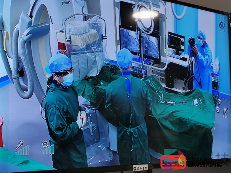 7月5日上午,同济医院的专家医生通过5G+AR技术,成功实现了远程协同介入手术。远在“千里之外”的枝江市人民医院借助悉见XMAN AR眼镜,将手术实况实时回传至武汉同济医院,并在同济医院心内科专家的指导下顺利完成了冠脉介入治疗。