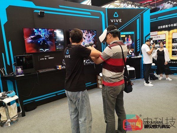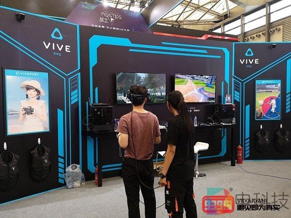 AMD展区的旁边就是我们的老朋友——HTC VIVE。今年VIVE展区的风格依然是科幻风十足,而且活动非常丰富。与丰富的活动相对应的自然是丰富的体验内容,想要玩真正的VR游戏大作,就来VIVE展区吧。