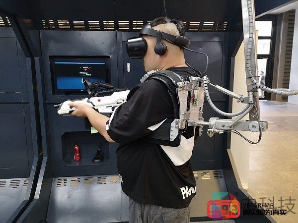 在梦语者的展区,我再次看到了超酷的类外骨骼装甲的线下VR设备,这里也聚集了大量前来体验的观众。即使像上图这位魁梧的老哥,戴上梦语者的装备之后也能轻松玩转VR线下游戏,真不愧是大众的福利。