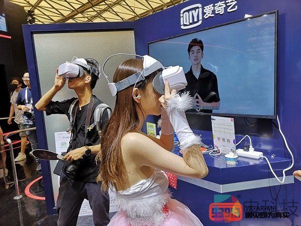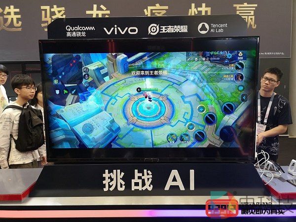 通过展区上空悬挂的巨大字母,我发现今年高通展区实在是XR、AI、5G一个都不能少。观众不仅可以在这里与AI一起打王者荣耀,还可以体验搭配骁龙CPU的各种VR一体机,爱奇艺、Pico等知名品牌都汇聚于此,现场的小哥哥和小姐姐都过来观看VR一体机里的小哥哥和小姐姐了。