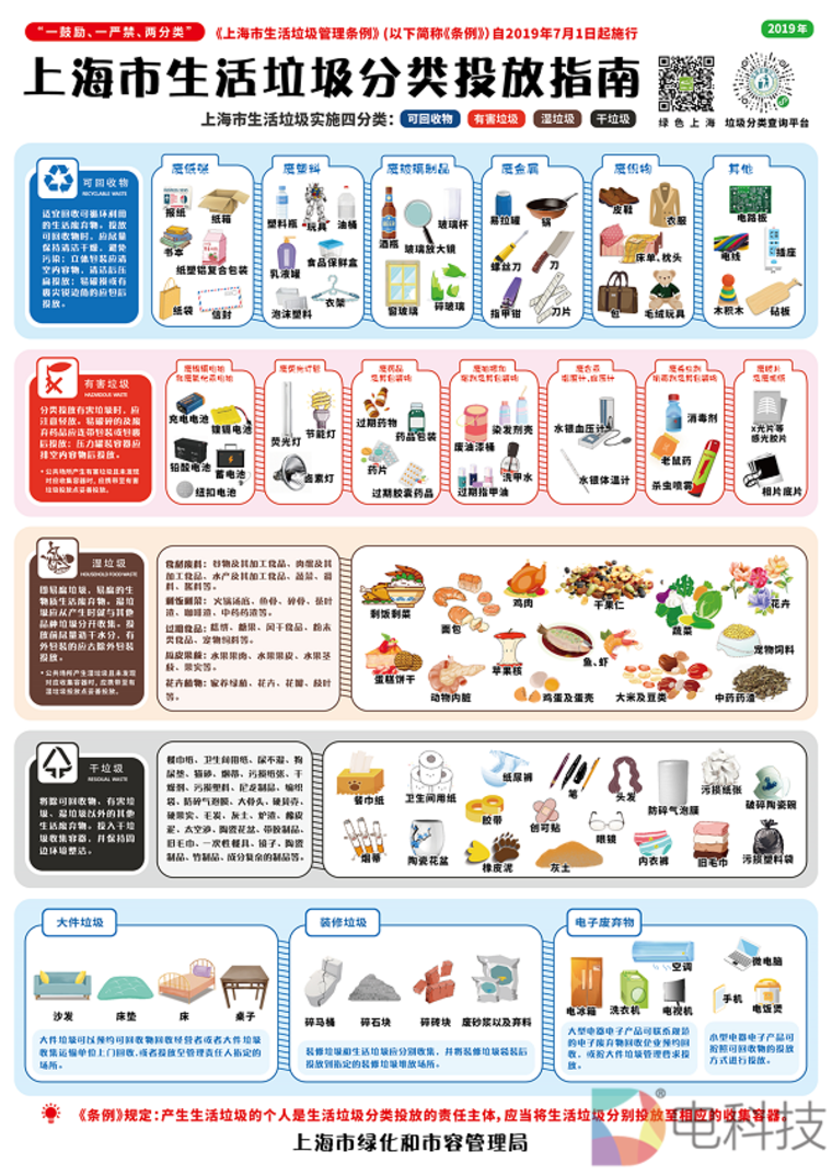 7月1日,有着“史上最严”称号的垃圾分类管理办法:《上海市生活垃圾管理条例》正式实施,据悉,该条例将垃圾主要分为了可回收物、有害垃圾、湿垃圾和干垃圾这四种,未能正确分类投放垃圾的,单位可处五千元以上五万元以下罚款,个人可处五十元以上二百元以下的罚款。