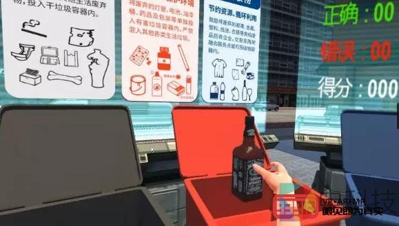 “操作简单,轻松上手”是这款自助VR垃圾分类体验平台最大的特点。进入VR后,体验者面前自动出现四个分类垃圾桶,根据系统随机出现的垃圾,操作者在规定的时间内把它们正确地分类到指定的垃圾桶即可。