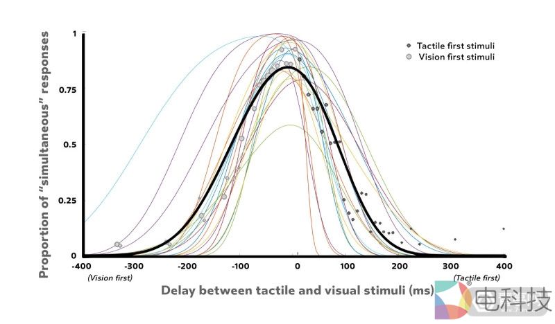 从这个分布图中,研究人员发现低延迟的范围并不是正好在原点上,而且参与者对于超前于视觉的体感或音频非常敏感。另外低延迟范围的形状更像是椭圆而不是正圆,相比音频延迟,参与者们对于体感延迟更加敏感,这也印证了之前的,音频延迟造成体感感觉更加延迟的说法。此外还发现,改变交互方式有可能会提高人对于不同步的接受能力。