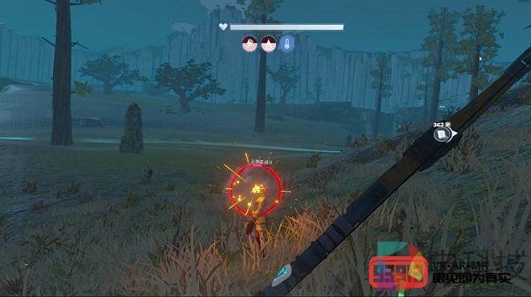 在战斗方面,《Nostos》VR版的战斗是“全身运动”,完全不像PC版只是动动手指就可以,这样的好处则是更真实和更具沉浸感。在一次面对多名敌人围攻的战斗中,我掏出弓箭,通过左右手的搭配射出了一支支利箭。在此过程中我看到了两个不错的细节:首先是弓箭的轨迹会随着距离而弯曲,即射向远方的箭会飞出一道弧线,这点非常真实;其次是弓箭射击带有爆头的设定,射中敌人头部会有特效显示,同时中箭的敌人身上也会显示这些箭枝,看起来又真实又有趣。之后我又换上了近战武器,每一次攻击敌人都需要我挥动手臂,这种紧张刺激也是PC版无法比拟的。