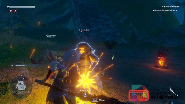 除了采集和建造,探索和战斗自然也是开放世界游戏的必需品。《Nostos》为玩家提供了一个操作简单且快节奏的战斗系统,玩家控制采用第三人称追尾视角的主角,通过自己拥有的各种武器与敌人作战,比如弓箭、棍棒甚至是火把(部分敌人可以点燃)。再配合前面提到的东方美术风格,我可以负责任的说,游戏的战斗虽然紧张,但是绝不血腥与恐怖,特别适合日式游戏玩家和女性玩家。在多人联机方面,在这次内测中我只是简单体验了与其他玩家配合战斗的爽快,而更多的多人交互内容则需要我们在之后更深入的游戏体验中去挖掘和发现。
