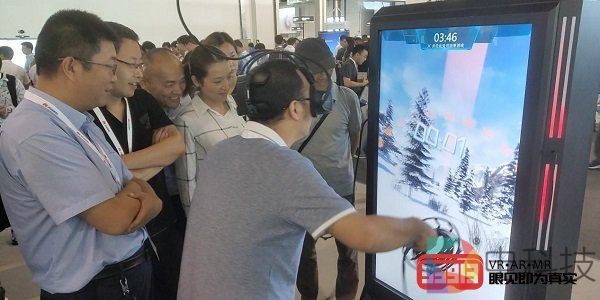 同期,在VRLEO娱乐自助机展台前,聚集了大量前来体验的参展者,人们对于VRLEO娱乐自助机充满了好奇,对于用户来说,实际操作体验才能最大程度地了解VR,参与沉浸其中。VRLEO娱乐自助机高度智能化颠覆了传统VR线下设备的硬件形态和运营模式,无人值守和自动引导操作体验傻瓜式操作满足了各个年龄层的用户的需求。VRLEO娱乐自助机拥有丰富的游戏内容,80%游戏内容自主研发;采用游戏积分系统与多端互动,将成绩与消费积分挂钩,激励玩家延伸消费;定制游戏内容有效限定玩家活动范围,提高玩家在安全可控范围内进行体验。