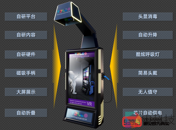 VRLEO娱乐自助机完全无人值守自动化、全程自动引导、自动操作系统,简单易上手,扫码即能玩;拥有量身定制的头显升降系统,手柄供电以及信号传输系统保证VR体验的流畅运行;同时为了自由进出场地设计了自动折叠机体的功能 具备全球即插即用的能力。VRLEO娱乐自助机占地面积仅0.5㎡,布局灵活,大大降低了前期投入成本。