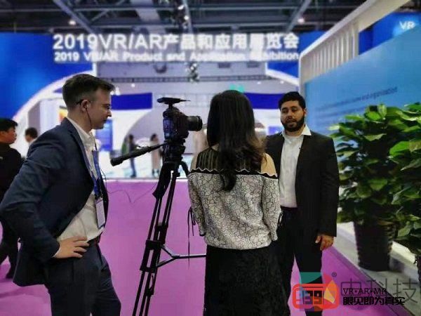2019 VR/AR产品和应用展览会展馆内人头攒动,作为世界级的VR/AR盛会,可以看到多国的现场媒体报道。VRLEO自助一体机的出现,便吸引了现场国内外记者和参展者体验者的目光。