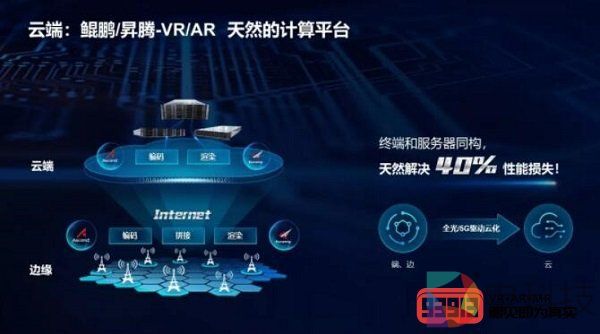 云端计算方面,华为推出的基于Arm架构的鲲鹏/昇腾计算平台,能够避免VR软件向云端移植带来的40%的性能损失,成为众多VR/AR应用端边云协同计算的有力支撑。