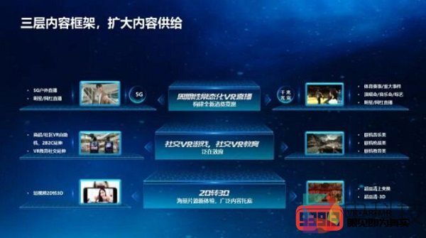 华为结合对VR用户的理解和实际部署经验,提出VR “三层框架”以扩大内容供给:1)2D转3D,为VR产品做海量内容托底;2)增加社交属性,让VR游戏、VR教育等应用联机变现;3)开展常态化VR直播,吸引新用户、促进活跃度。