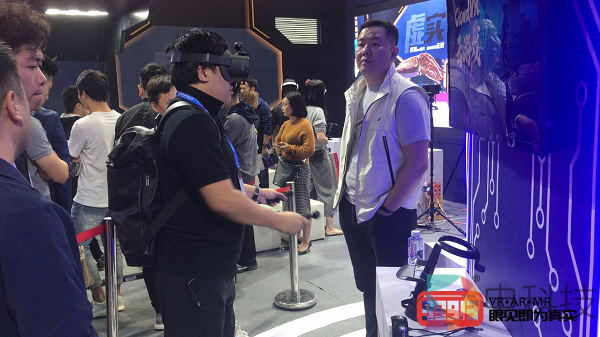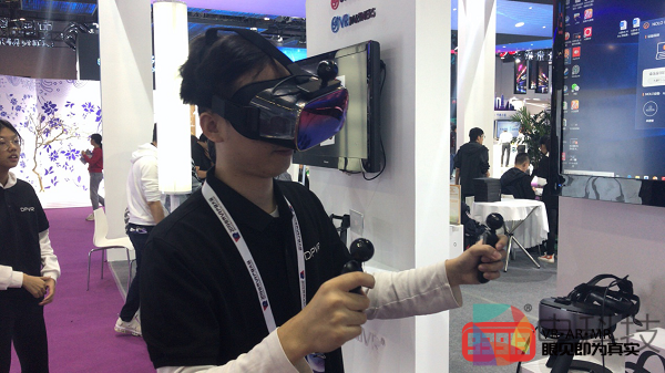 大会现场,NOLO CV1系列产品搭配VR显示设备,为参展群众提供VR游戏体验。不论是NOLO VR自己的展台,或是华为、大朋、兰亭数字等合作企业的展台,还有中国电信等运营商展台,“VR头显+NOLO CV1系列交互设备”的沉浸式VR玩法组合都在吸引着参观者的目光。
