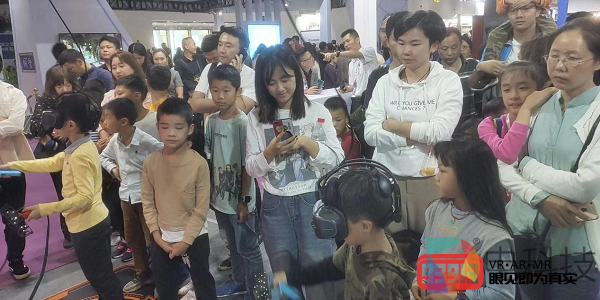 同时,20号是2019世界VR产业大会的第二天,在南昌绿地博览中心A5馆T05B前,挤满了前来一睹VRLEO自助娱乐一体机的体验者们。看这阵势,大小朋友们都玩的不亦乐乎呢!
