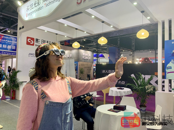 9月19日,影创科技混合现实眼镜的“自然手势”人机互动操作方案同时在青岛即墨高级技工学校和江西南昌市的世界虚拟现实产业大会会场亮相。 青岛即墨:技能大赛展示