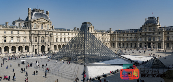 体验的一开始,你会站在法国卢浮宫前金字塔形玻璃入口处,《蒙娜丽莎:越界视野》将卢浮宫外景建模重制,观众可以在广场上自由移动,并且可以通过简单的交互了解卢浮宫的历史。卢浮宫(法语:Musée du Louvre)位于法国巴黎市中心的塞纳河北岸,位居世界四大博物馆之首。始建于1204年,原是法国的王宫,居住过50位法国国王和王后,是法国文艺复兴时期最珍贵的建筑物之一,以收藏丰富的古典绘画和雕刻而闻名于世。