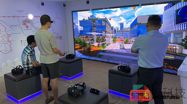 据了解,在展示创新园整体风貌方面,项目方采用来自深圳的人机交互解决方案提供商瑞立视提供的前沿方案——通过融合“3D成像+多人VR+人机交互”等技术实现高度沉浸式的参观体验。