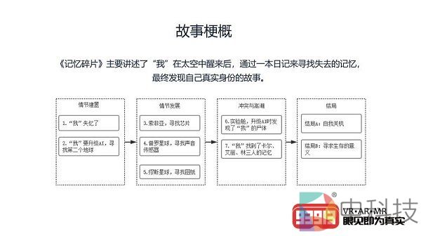 除了制作精良,《记忆碎片》对于我们而言还存在很多创新之处,一些剧情、场景与交互的设计都令人眼前一亮(比如AR语境下的叙事与解谜)。关于创新性这一点,王楚宁表示,因为这部作品从一开始就带有学术研究的目的,所以团队成员在创作过程中做了很多大胆的尝试,几乎没有考虑过商业化的因素。而或许正是这种“放手一搏”的态度,再加上我们前面提到的理性思考,成就了作品本身的创新性。