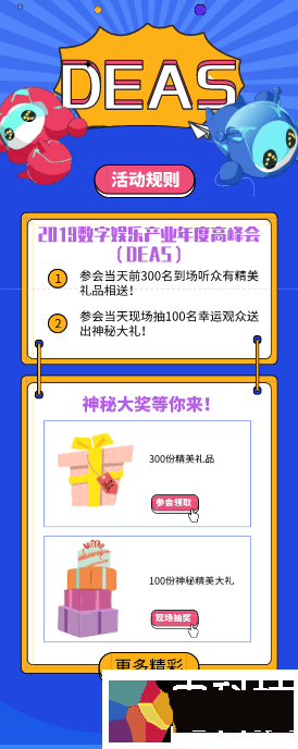 而除了前300位到场听众外,主办方还将在活动现场为大家准备第二重惊喜——在现场将以抽奖方式送出多重精美伴手礼,限量100个!想必这个环节,绝对不容错过!更精美的大礼,更神秘的惊喜,究竟花落谁家?机不可失,时不再来!门票有限、奖品有限,手快有,手慢无!2019 DEAS,期待在现场与你相遇!