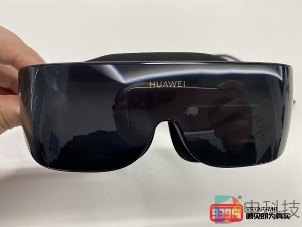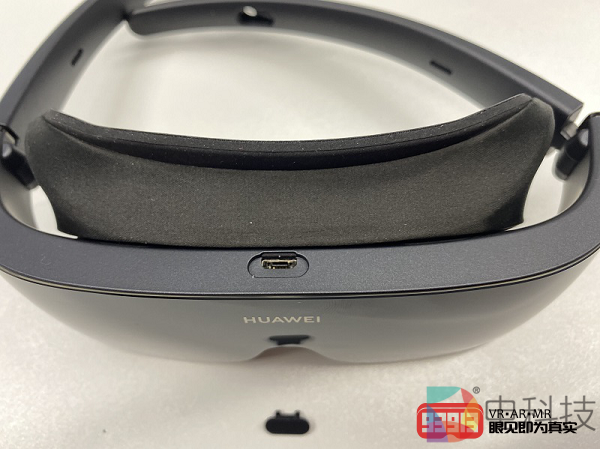 在与这幅VR眼镜进行近距离接触的过程中,我可以感受到其做工的精良,不愧是大厂华为之作!眼镜正面的材质具备镜面效果,再配合经典的黑色,在质感十足的同时也散发出浓浓的科技感。而我们刚才看到的那个圆角矩形接口其实就是华为专门为6DoF交互套件提供的数据接口,稍后我会介绍两者的连接方法。