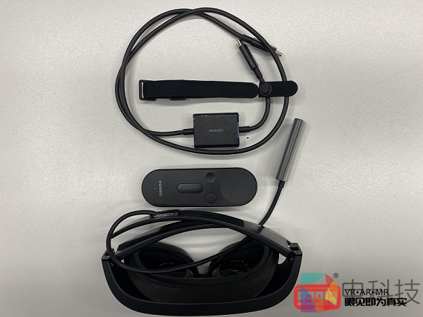 打开携带包,将里面的全部物品取出,我看到除去说明书之外,这些物品包括一副VR眼镜、一个手柄、一根绑带(用于固定头部)以及一根专用Type-C 3.1高速数据线(后简称C2C线缆)。