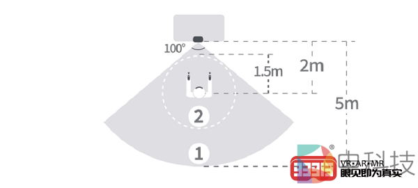 将NOLO CV1 Air的定位基站水平放置在桌面边缘,正对用户,建议与用户保持1.5-2米的距离,最远可支持5米(合理位置如上图),然后开启NOLO CV1 Air的定位基站、交互手柄,操作完成后其上的绿色指示灯常亮。