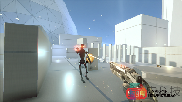 我体验的第二款游戏是由国内独立开发者开发的VR射击游戏《Aeon》。这款游戏在玩法上与《SUPERHOT》类似,都是主打子弹时间下的射击与动作,因此对于操作同样要求很高。在实际体验中,当我手势双枪,一边躲避敌人的子弹,一边瞄准敌人头部射击时,我发现NOLO CV1 Air的表现同样不俗。在其精准的定位追踪保障下,我在子弹时间中完成了数次对敌人的爆头,这实在是一种非常享受的游戏体验。