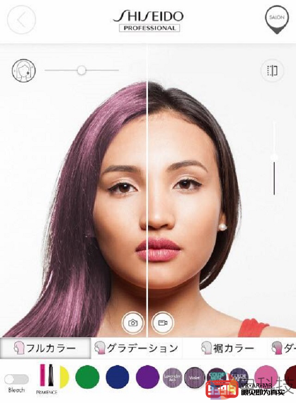 谈到与先进技术的结合,近日,资生堂旗下的移动app“资生堂专业版”推出了一项名为“COLOR MIRROR”的网络服务,借助AR技术,该服务能够模拟当下流行的设计色彩。用户在家中或在美发沙龙中通过智能手机或平板电脑上的资生堂专业版app,即可预览自己采用全彩色、渐变色、下摆色(只有发梢的颜色)以及深根色(发根处为深色、发梢为浅色的渐变色)的4种染发效果。同时,用户可以通过调节色度控制栏,在资生堂的染发品牌“Primence”、“Primence Enrich”和“Color Muse”等50多种颜色中选择自己喜欢的颜色及其亮度。另外,COLOR MIRROR还具有左右比较功能,用户可以比较修改前后的效果,并将图像保存到智能手机或平板电脑上。