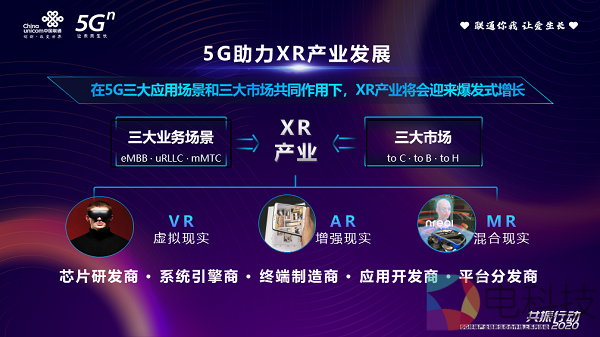 中国联通终端与渠道支撑中心总经理王启明表示:2020年突如其来的疫情让XR产业有了新的增长点,家庭娱乐的需求明显、XR应用场景广阔、XR行业发展空间巨大、线上直播将成为主流趋势。从2019年5G元年到2020年4G向5G切换过渡的重要时间节点,中国联通将在5G三大应用场景(eMBB、uRLLC、mMTC)和三大市场(to C/to B/to H)共同作用下,推动XR产业迎来爆发式增长。更多的杀手级应用将出现在教育、游戏、交通、新电商、养老等诸多方面。基于5G大环境,中国联通将推出“1个联盟、2个平台、N个计划”的XR全案策略,创建XR生态联盟,搭建XR终端应用商城开启联合落地计划。