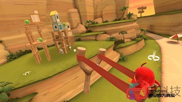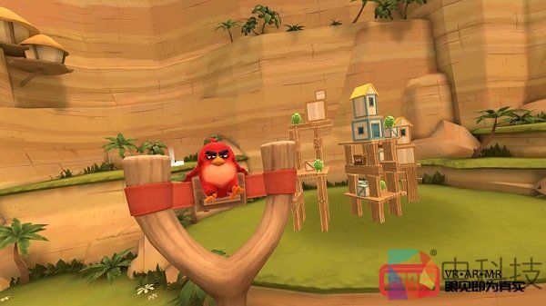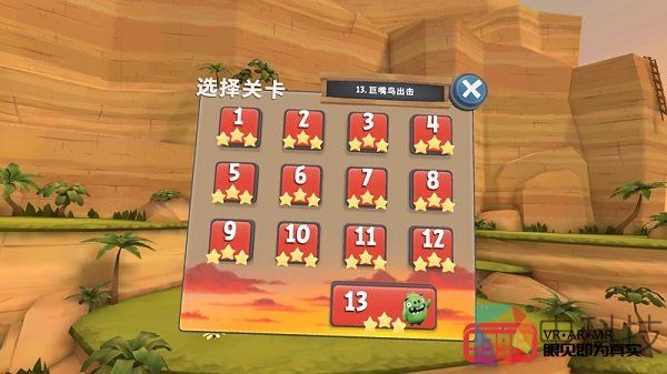下面一款游戏是来自经典IP的《Angry Birds VR: Isle of Pigs》,我之前玩过其PCVR版本。这款游戏的最大特点就是从平面的《愤怒的小鸟》变成立体世界,玩家需要反复考虑从什么样的角度攻击猪猪才能获得更高评价,其操作方式类似于传统的VR射箭游戏(双手柄交互),经过反复观察与思考,我终于打出了全部三星的好成绩(确实花了不少时间)。