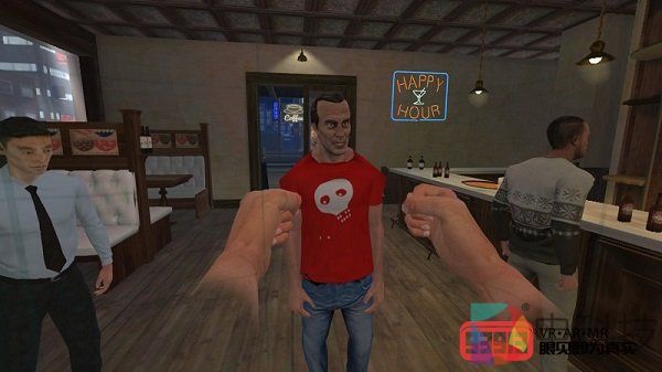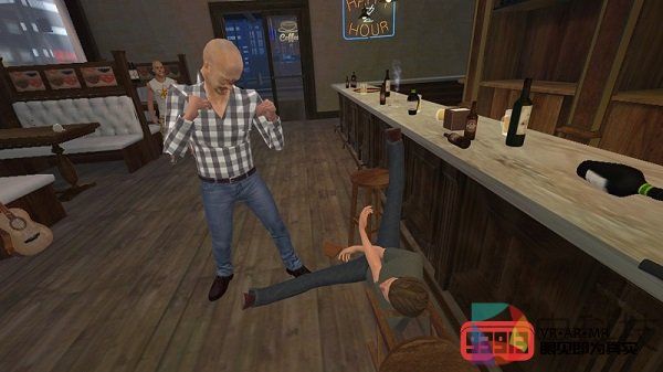 最后一款给我留下深刻印象的VR游戏是《Drunkn Bar Fight》,顾名思义,这是一款“在酒吧里和酒鬼打架”的游戏。这款游戏的操作方式既包括体感拳击,玩家也可以用摇杆进行移动,而在实际游玩中,无论是移动还是击打对手,我都没有产生任何眩晕感,手柄表现依然出色。一场激战下来,最终的结果是我被一群酒鬼群殴,这款游戏告诉我们,即使在游戏里也不要随便打架(笑)。