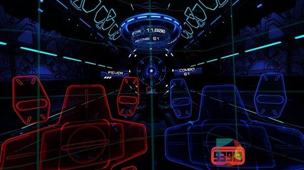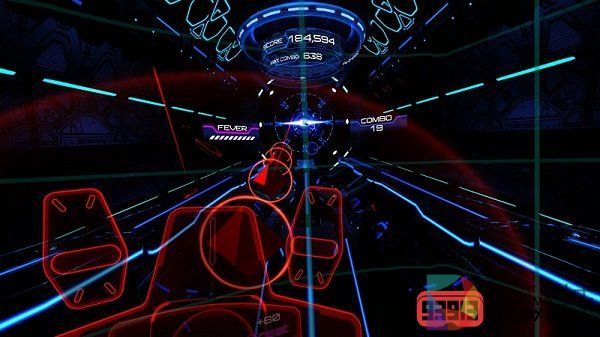 下面终于来到6自由度VR游戏体验环节,这也是我在本次体验中最关注的部分。其实,我对于Pico Neo 2还没引入经典大作《Beat Saber》感到遗憾(不过用户可以通过PC串流来体验这款游戏),好在Pico 商店里好玩的VR音游还是很多的,比如《Stumper》。在游戏中玩家需要借助两块光盾,根据节奏来抵御不同颜色光球的攻击。这里需要强调的是,在实际游玩中Pico Neo 2的手柄给我的感觉就是“稳”,操作完全无延迟。在这种情况下,我发现简单和普通难度基本毫无挑战,直接开启最高难度才够爽。