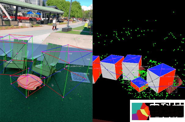为此,Objectron研发团队开发了一种图片标记工具,该工具可以通过分屏视角显示2D视频帧,支持标记者使用分屏视图显示2D视频帧来标记对象的3D边界框(即矩形边框)。这些3D边界框将叠加在点云数据、摄像头画面和识别到的平面上。