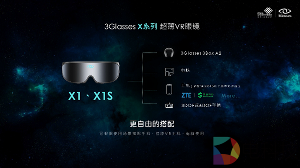 此外,3Glasses与中国联通、高通、中兴、数字王国展开的一系列合作,从硬件到内容为本次3Glasses超薄系列新品“X1S”提供强有力后盾。用户可根据使用场景自由搭配手机、挂脖VR主机、电脑、手柄进行“别致”体验。