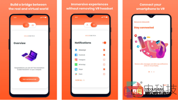 《Holoswitch》将支持HTC Vive、Valve Index、Oculus Rift/Rift S、Oculus Quest和Windows Mixed Reality等兼容OpenVR的头显,售价5.99美元。该内容设置非常简单,只需安装PC客户端和移动应用,将头显与智能手机配对,然后选择要接收的通知即可。目前,《Holoswitch》仅支持安卓设备,不过开发商承诺在不久的将来兼容iOS设备。
