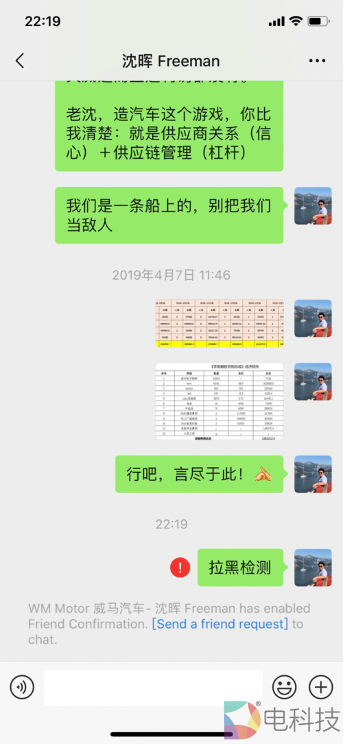 此后,财经网汽车尝试添加威马汽车创始人沈晖的微信,以求证相关事项,但对方也未通过。