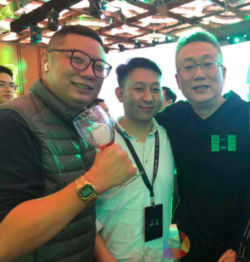 左一左二为极鱼科技合伙人与威马创始人沈晖在2019年2月供应商大会的合影