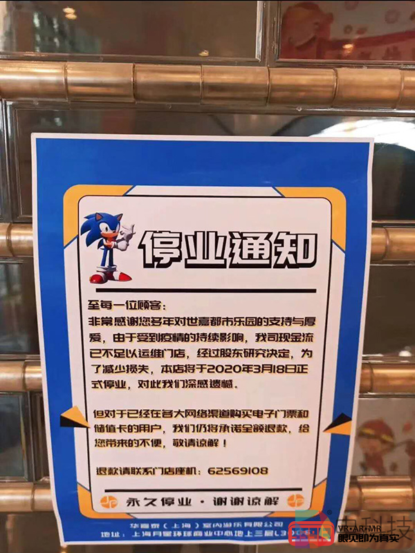 一波刚平,一波又起。前段时间,有网友曝光了一份「疑似」上海JOYPOLIS世嘉都市乐园的永久停业通知,「由于受到疫情的持续影响,我司现金流已不足以运维门店,经过股东研究决定,为了减少损失,本店将于2020年3月18日正式停业,对此我们深感遗憾。」