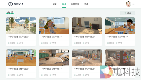 K12 VR实验课为提升学生实操能力,更加具象的理解和记忆抽象知识点,提供超过500个与教学新课标知识点同步的VR同步实验;注重实验过程的科学性,实验操作的交互性,实验现象和结果的仿真性,实验数据的严谨性。英语课程已超过400节课程,学生通过VR构建的虚拟场景进行自主的英语会话练习。每个年级均以教材为基础,配备了相应难度的课程,主题从家庭生活、娱乐爱好等适合青少年的角度切入,通过跟读、对话、讨论等形式,训练孩子的听力和口语能力,并且体会在和其他同伴的交流中,如何应对他人的问题,如何提出问题等沟通方式。