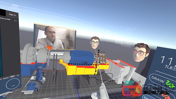 MeetingRoom提供一个虚拟的会议室,提供由参与者操纵的协作和演示工具,使用VR头显与多达12名团队成员一起指点、讨论、标记和删除。当然,也可以通过非VR平台访问。