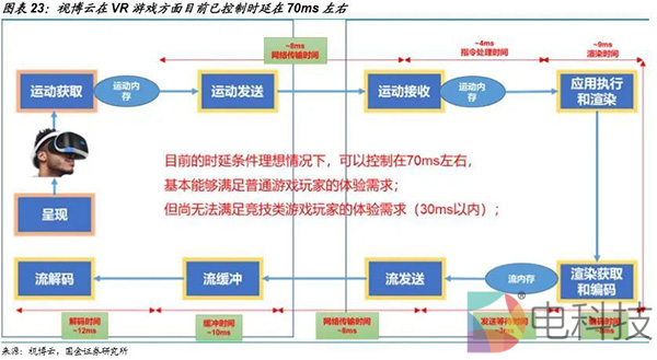云VR下对设备性能要求虽然降低,但对网络的要求增强。视博云帮助中国电信搭建服务器和云平台,协助其降低网络延迟。目前的实验条件理想情况下,可以控制在70ms左右,基本能满足一般用户体验需求。对于硬核玩家的重度游戏体验来说,网络时延至少要控制在30ms。