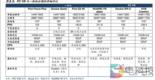 PC VR主攻硬核玩家,移动一体机面向一般用户。PC VR性能水平高,对PC配置要求也较高,主要面向硬核玩家;而移动一体机专注于便携性,性能相较PC VR有所下降,更适用于一般用户。