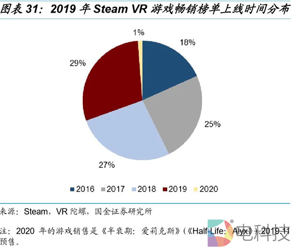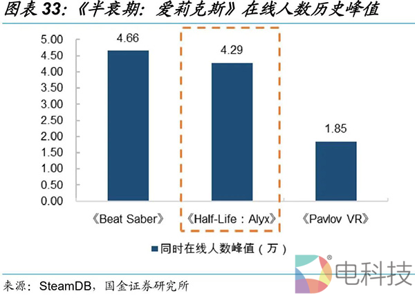 杀手级VR游戏《半衰期:爱莉克斯》(《Half-Life:Alyx》)口碑近封顶。2020年3月24日,Valve制作发行的VR独占游戏《半衰期:爱莉克斯》(可以理解为CS的战役版)正式发售后,历史同时在线玩家人数峰值达4.29万人,仅次于《Beat Saber》的4.66万人,远高于第三名的《Pavlov VR》的1.85万人。