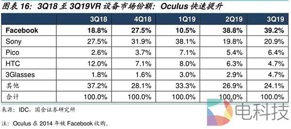 Oculus的低价策略效果显著,市场份额得以快速提升。自2019年Q3两款399美元VR头显:VR一体机Oculus Quest和PC VR Rift S发布以后,市场份额从10.5%增长至38.8%(2019年Q1的低市场份额源于旧版Rift的停产)。Oculus只针对欧美和部分亚太地区发售,其中不包括中国大陆,而在近乎每一个发售市场,在不到一天时间内,Oculus官方渠道的前三天Rift S和Quest备货量已经全部被预购完,订单需求甚至已经排到2020年3月。