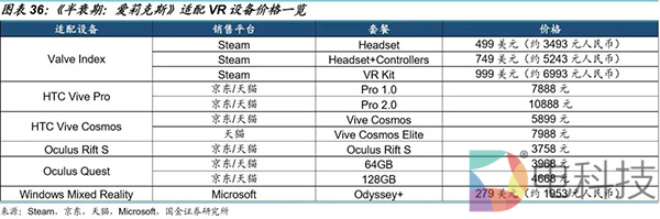 《半衰期:爱莉克斯》适配硬件价格并不低,但2019年Q4的预售带动Valve Index头显出货量跃升至第3位,单季出货量占全年72%。根据我们的统计,适配《半衰期:爱莉克斯》VR设备均价约5704元,再考虑到PC的高配要求,虽然游戏单价163元人民币(预售折扣价147元人民币,买Valve Index赠送游戏)并不高,但整体硬件的价格对于用户还是有一定门槛。即便可能目前仍是主要以硬核玩家为主的消费群体,优质游戏内容对于硬件销售的带动也有一定效果。