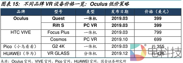 这种商业模式回收速度很慢,从长期来看不可持续,但短期内对于迅速推广普及VR设备效果显著。比较2019年主流厂商推出的VR一体机和PC VR,尤其是3月发布的Oculus Quest,在性能表现远优于其他一体机的条件之下,价格仍然位居末位,性价比非常高。