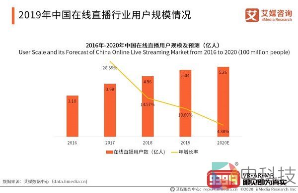 首先在用户数量增长方面,辅助传统社交媒体和社区的宣传推广方式,游戏IP能够通过直播的方式触达直播领域的潜在用户。据艾媒数据统计,2019年中国在线直播行业用户规模已增长至5.04亿人,预计2020年在线直播行业用户规模达5.26亿人。