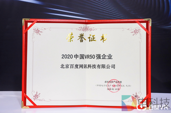 百度在大会上被评为“2020中国VR50强企业”