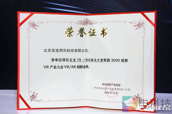 百度VR一体机解决方案荣获大会“AR/VR创新金奖”