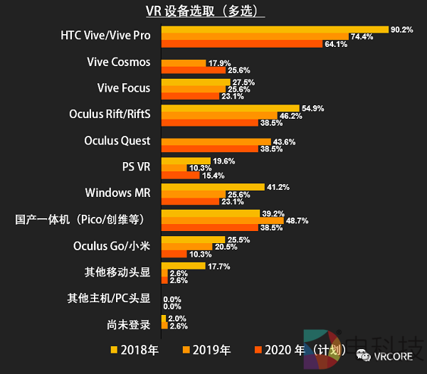 Vive Cosmos和Oculus Quest作为两款 2019 年发售的重要产品受到了市场的关注。